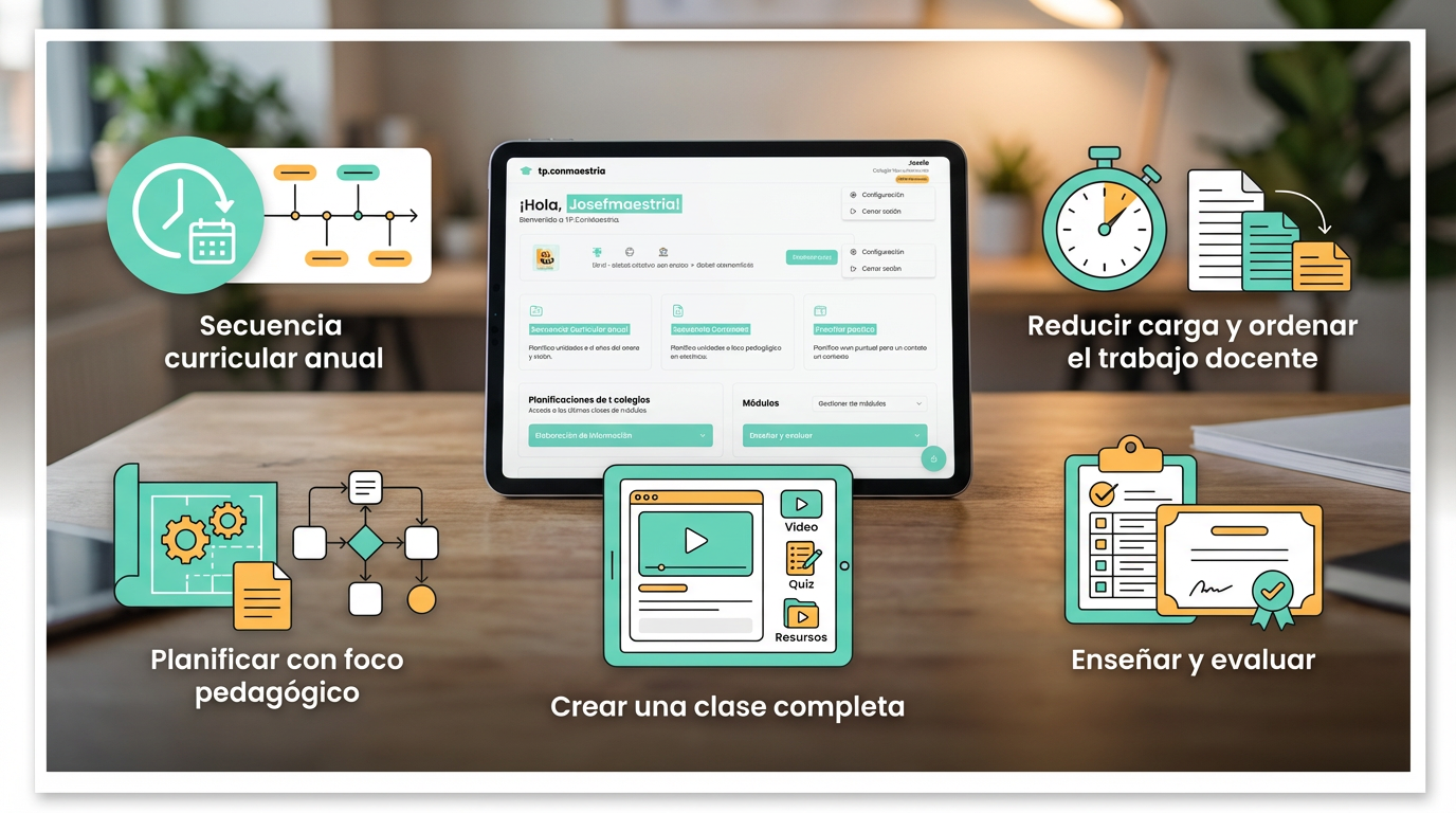 Una plataforma integral diseñada para potenciar tu labor docente en la Educación Media TP. Planifica, crea y evalúa con herramientas inteligentes que te ahorran tiempo.